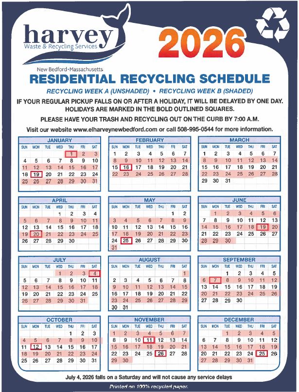 The Fairhaven Recycling Center operates on a seasonal schedule as follows. A valid 2026 sticker must be purchased for use. Permit MUST be placed on the inside of the windshield, lower left side or access will be denied.