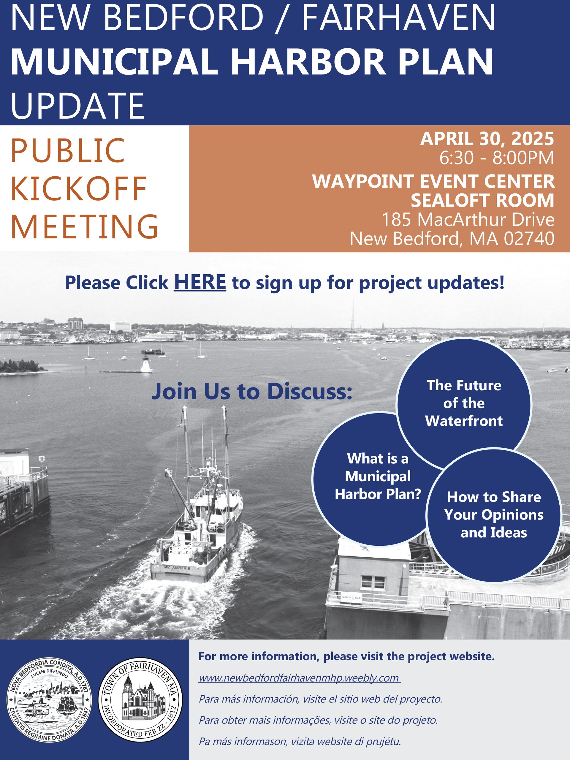 New Bedford / Fairhaven Municipal Harbor Plan Update April 25, 2025| Marine Resources Committee Post navigation Previous Previous post: TOWN OFFICES HOLIDAY CLOSING HOURSNext Next post: Town Meeting Overview